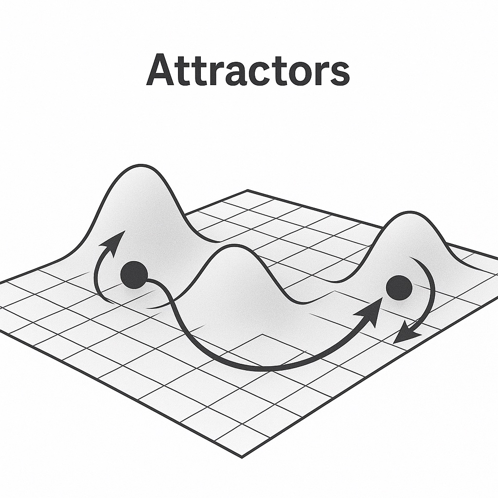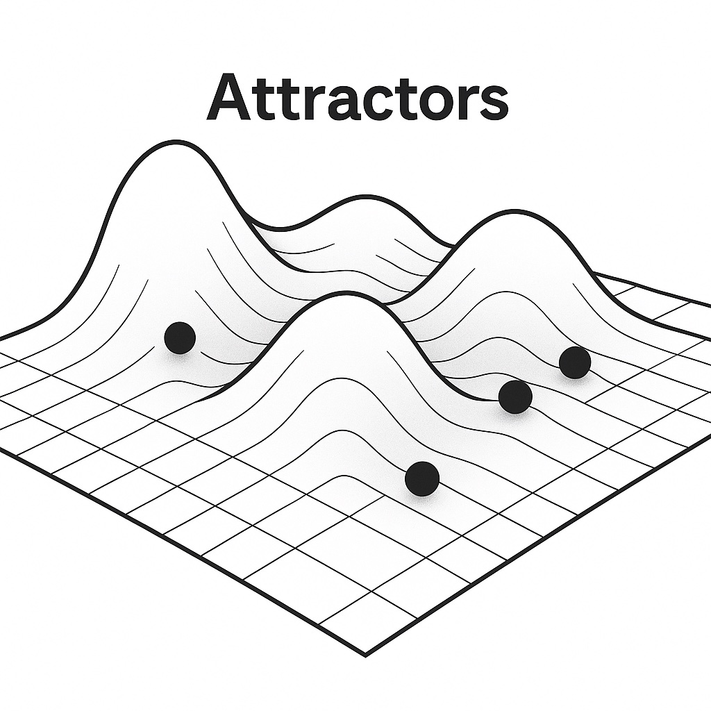 Imaginemos una superficie llena de montañas y valles. Si soltamos una bolita en cualquier punto, rodará hasta caer en uno de los valles. Allí se estabilizará. Ese valle representa un atractor: un estado de equilibrio dentro de la complejidad. El cuerpo humano, y particularmente el del escalador, se comporta de manera similar. Enfrentado a la gravedad, la textura de la roca o la inclinación del muro, busca continuamente valles de estabilidad desde los cuales moverse con seguridad. Pero ese paisaje no es fijo. Cambia con la fatiga, la emoción, la altura o la textura del agarre. Entrenar, desde esta perspectiva, es aprender a modelar ese paisaje, a hacer que los valles útiles sean más profundos y los menos funcionales desaparezcan.