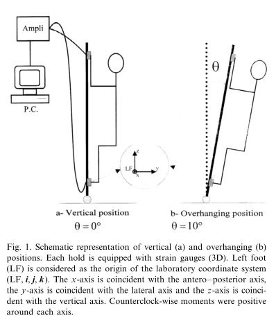 Noé, F., Quaine, F., & Martin, L. (2001). Influence of steep gradient supporting walls in rock climbing: biomechanical analysis. Gait & Posture, 13(2), 86-94.