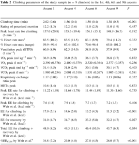 Fortunately, since early this year, Vanessa España Romero et cols, published a very interesting study in the Euopean Journal of Applied Physiology (1). They evaluated 9 experienced climbers in the same same route in a number of physiological parameters. The study consisted of climbing a 35 moves 6a (5.10) route in 9 opportunities, separate them by 1 week. The climbers were allowed to continue their usual training, but they could only climb the route in the instances provided for evaluation.