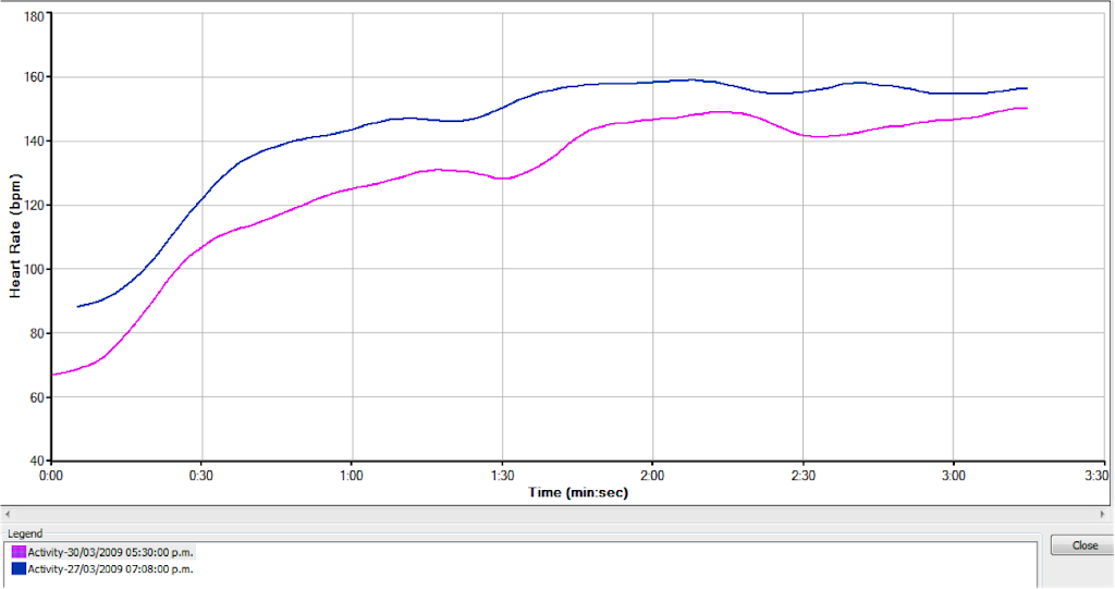 An example of this can be seen in the following graph heart rate, where a climber climbed the same route, on different days.