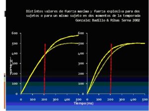 As sport performance increase, conditions to apply force worsen: the climber will have less time to apply strength, since the same action will be done with greater velocity. So time to apply force is reduced with the increase in sport mastery, and the only solution to this is to improve the force-time curve, that means apply more strength in less time (Badillo y Serna 2002).