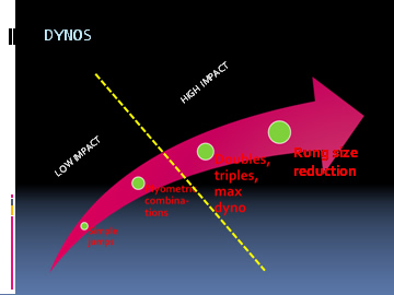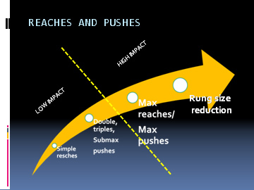 Even so, exercises can be classified by their impact. High impact exercises are exclusively for high level climbers, and low impact exercises are for medium level climbers.