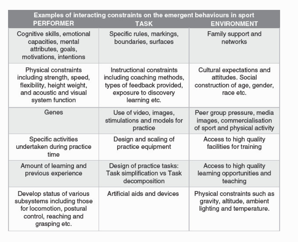 Davids, K., Button, C., & Bennett, S. (2008). Dynamics of skill acquisition: A constraints-led approach. Human K