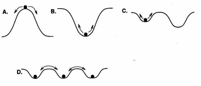 These attractors (or patterns) have a certain degree of instability, greater or lesser, which will be determined by the shape and depth of what is called the attractor’s bowl. Generally in a phase space there are several attractors and bowls and the space that separates these bowls is called the separator or phase transition. We can see in the following graph different degrees of stability.