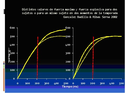 Pero no toda la fuerza es importante. A medida que mejora el rendimiento deportivo emporan las condiciones para aplicar fuerza: el sujeto cada vez tendrá menos tiempo para aplicar fuerza, ya que la misma acción ha de realizarse a mayor velocidad si se quiere mejorar el rendimiento. Por tanto a medida que mejora el rendimiento se reduce el tiempo para aplicar la fuerza, y la única solución parar mejorar el rendimiento es mejorar la relación fuerza-tiempo, es decir aplicar más fuerza en menos tiempo( Badillo y Serna 2002).