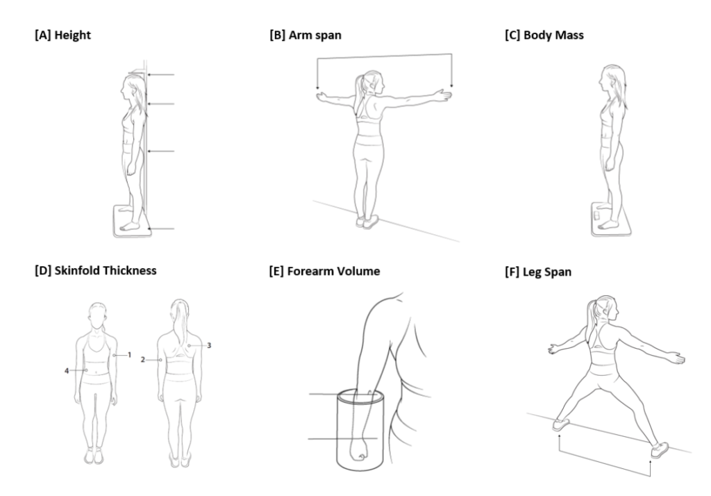 Todas estas proporciones permiten determinar al escalador/a promedio y de ahí poder obtener datos que permitan tomar decisiones en cuanto a la selección y detección de talentos, en el caso de que consideremos los rasgos antropométricos dentro de los criterios. Existen numerosas pruebas que permiten evaluar y medir a los deportistas. En la figura siguiente hay algunos de esas pruebas. Particularmente el Ape index es una de las relaciones que más interesan a la hora de evaluar el perfil antropométrico de los escaladores (Watts et al., 2003., Laffaye et al., 2014 e Ignjatovićet et als 2017), aunque los estudios acerca de este parámetro son contradictorios en los escaladores. El mismo consiste en la relación entre el largo de brazos y la altura. A mi criterio, para hombres tener un índice mayor 1,03 y para mujeres mayor de 1,01 es beneficioso, ya que implica mayor alcance en relación a la altura. Siempre poniendo en contexto, ya que el índice por sí solo no nos dice nada; Alex Megos tiene 1,00.