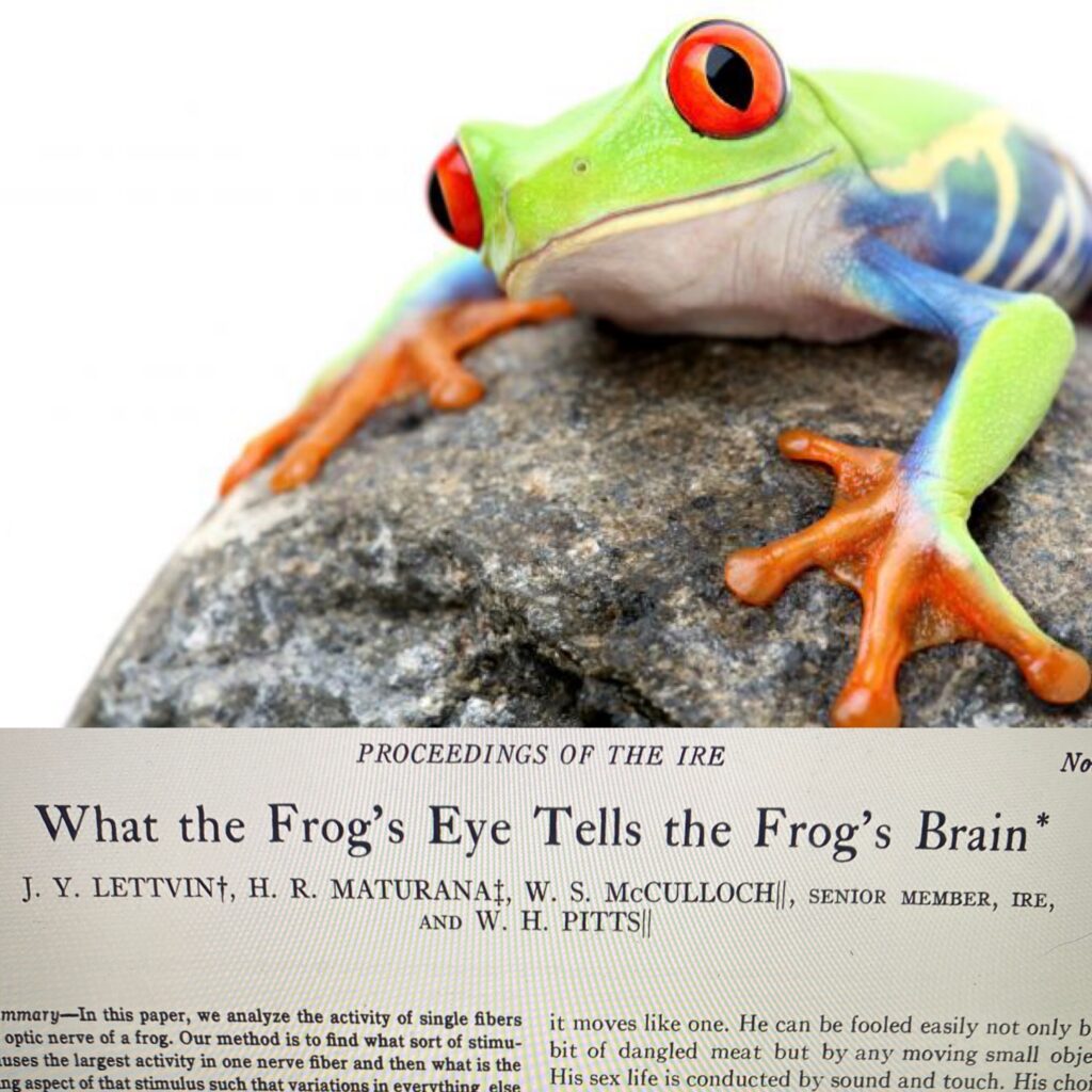 Lettvin J. Y., Maturana H. R., McCulloch W. S., and Pitts, W. H. (1959). What the Frog’s Eye Tells the Frog’s Brain. Proceedings of the IRE, vol. 47, no. 11, pp. 1940-1951, Nov. 1959