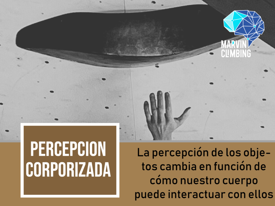 La percepción de los objetos cambia en función de cómo nuestro cuerpo puede interactuar con ellos. Si algo es demasiado pequeño, no lo percibimos como relevante para nuestra acción; si algo es demasiado grande, podría representar un desafío o ser percibido desde otra perspectiva, y mas aun en la escalada podemos discriminar la utilidad de cada una de las presas y agarres según como nuestro repertorio y nivel nos permita. Un principiante verá una micropresa de pie como algo inutil, y un escalador experto lo verá como una pieza fundamental para la resolución de un problema.