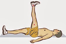 Acostado sobre la espalda, los brazos a los costados del cuerpo, se pide que eleve una pierna lo mas alto possible (sin flexión de rodilla), mientras la otra se mantiene estrictamente en el piso.