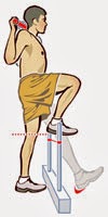 Se le pide al atleta que se pare enfrente de una valla que tiene la altura de la tibia. Mientras se mantiene el bastón sobre los hombros, se cruza la valla con una sola pierna, tocando con el talón el piso del otro lado de la valla, y retornar a la posición inicial.