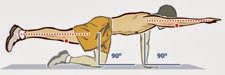 Se comienza en posición de cuadrupedia, y se levanta a la vez el brazo derecho y la pierna derecha hasta que quedan paralelos al piso, luego se tocan la rodilla y codo derecho y vuelve a la posición de extensión paralelo al piso. Se repite con el otro lado. Si no es possible hacerlo, se realiza con pierna derecha, brazo izquierdo. Al terminar se repite con el otro lado.